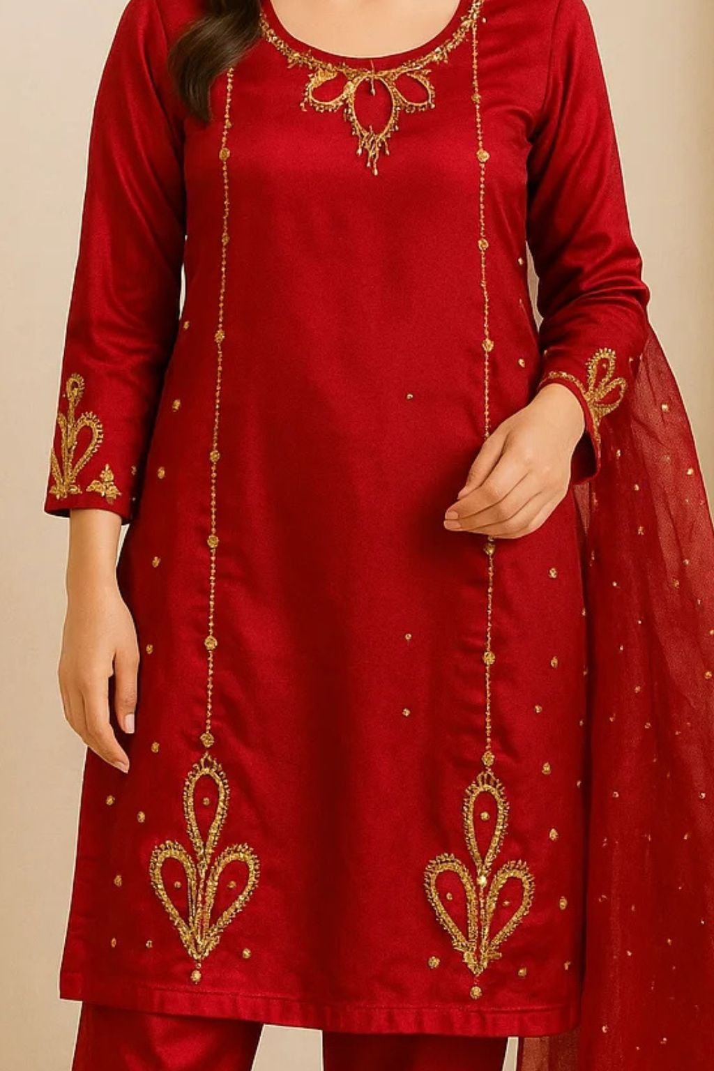 • Dupatta: Organza with gotta cone + sequence work